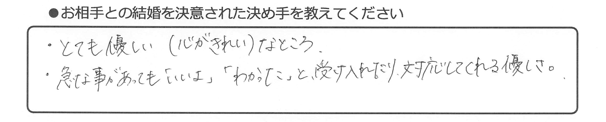 【お相手との結婚を決意された決め手を教えてください】