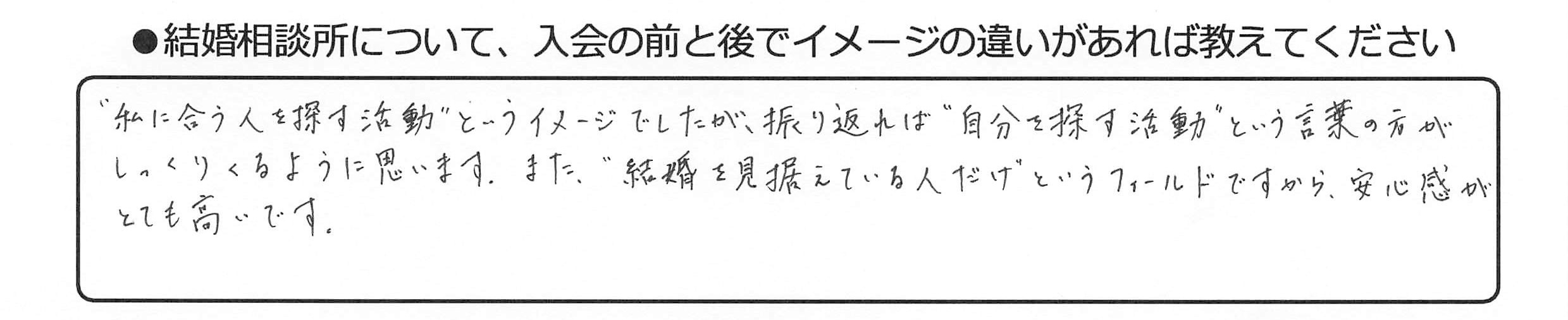 “私に合う人を探す活動”というイメージでしたが、振り返れば“自分を探す活動”という言葉の方がしっくりくるように思います。