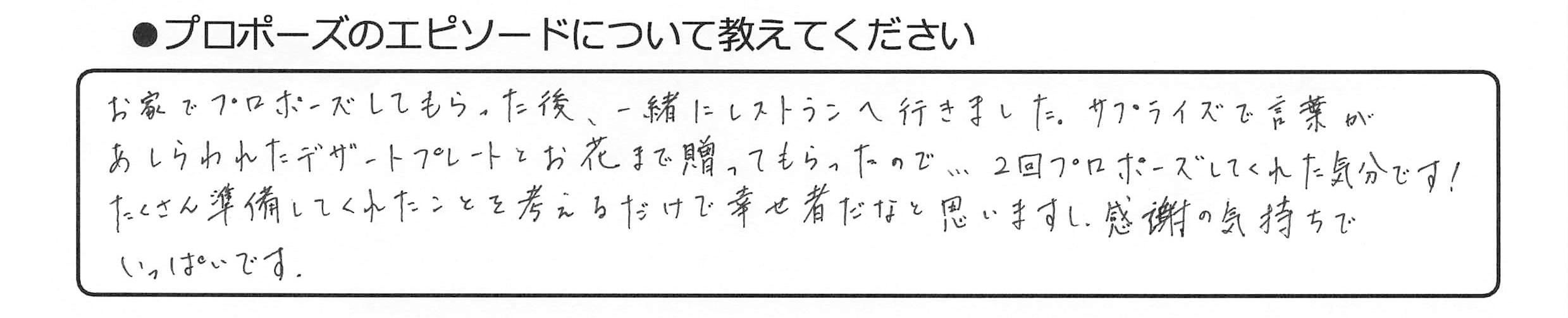 【プロポーズのエピソードについて教えてください】