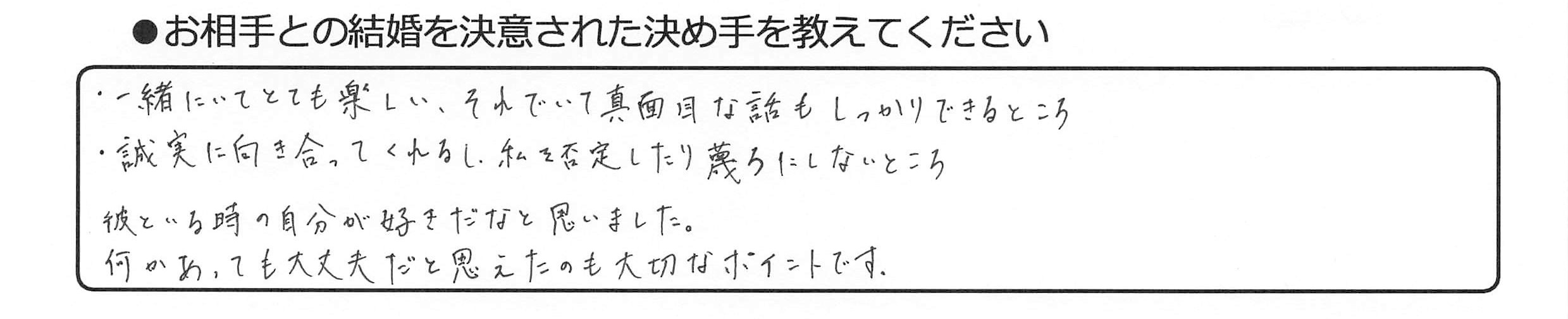 【お相手との結婚を決意された決め手を教えてください】